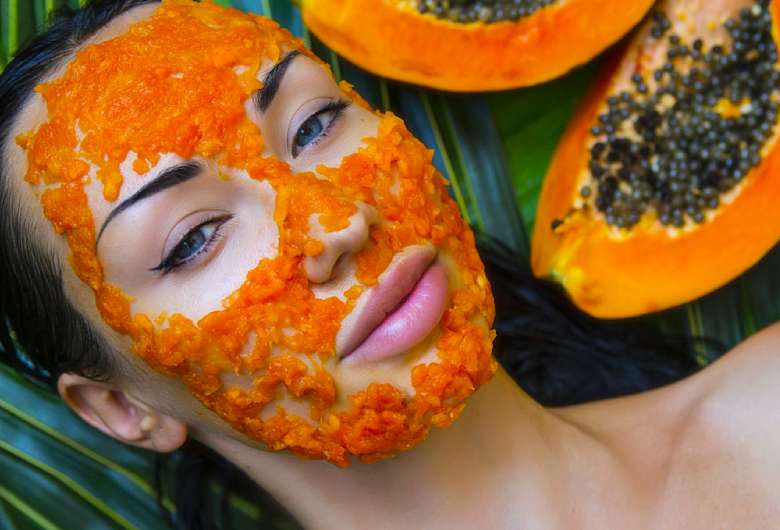 파파야-허니 페이스 팩: 으깬 파파야와 꿀을 섞어 효소와 항산화제가 풍부한 페이스 팩을 만들어